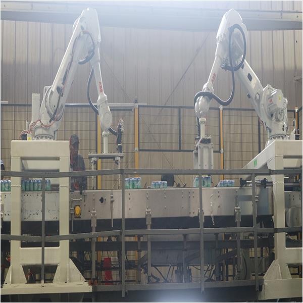 主體部分由ABB機器手和SEW伺服電機構(gòu)成,能實現(xiàn)箱包輸送中的轉(zhuǎn)箱、分道操作。