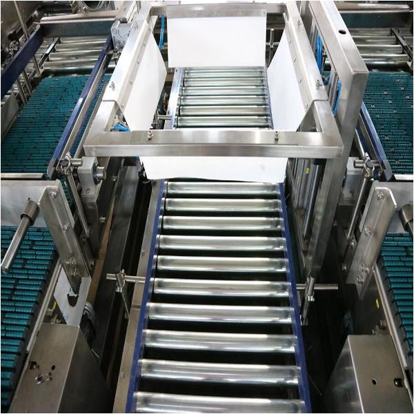 設備用于光明禮品的包裝線,將禮品包編組放置到大箱中。能夠同時支持兩臺禮品包包裝機。機械手完成裝盒動作之后,可以根據禮品包的進入通道,將大箱切換到相應的輸送線上。