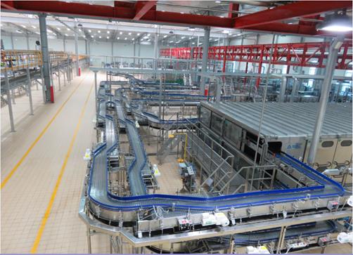 (2)主要設(shè)備:卸垛機(jī)、卸箱機(jī)、洗瓶機(jī)、灌裝機(jī)、殺菌機(jī)、裝箱機(jī)、碼垛機(jī)、瓶箱輸送系統(tǒng)、貼標(biāo)機(jī)、清洗系統(tǒng)等