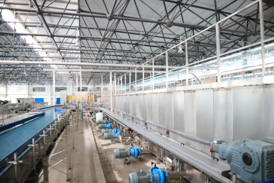 載瓶輸送帶采用節(jié)距為2又1/4英寸的高強(qiáng)度塑料鏈網(wǎng),其強(qiáng)度好,耐高溫,透水性好,并有一定的耐磨性,輸送帶的表面棱邊做成圓的,擴(kuò)大了表面積,使產(chǎn)品輸送平穩(wěn),主傳動(dòng)變頻無(wú)級(jí)變速,能很容易地改變輸送速度,從而使生產(chǎn)能力可在一定范圍內(nèi)作適當(dāng)調(diào)節(jié)。